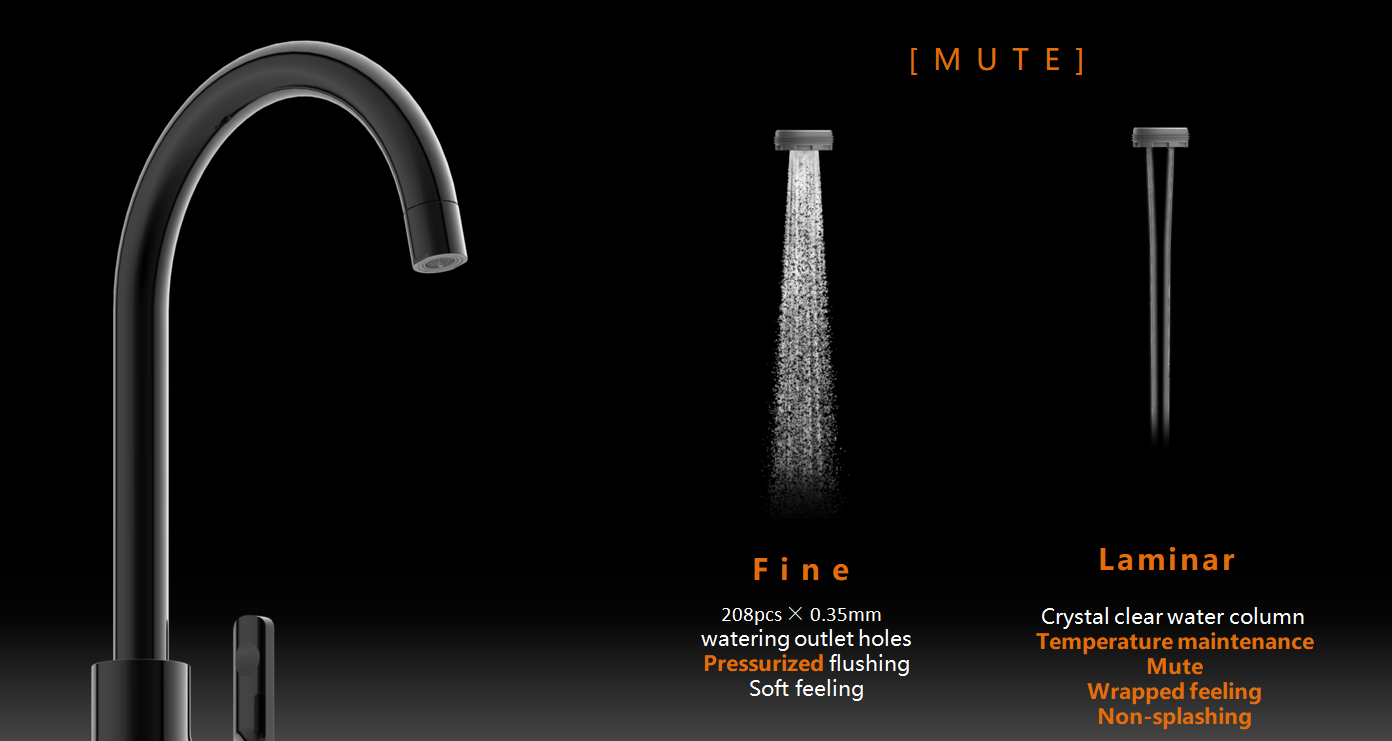 The outlet panel can reverse 180°, not only can flush the impurity but also can change to another kind of stream, you can choose your preferred stream and keep it according to your daily usage requirement, rich the function and offer better watering experience