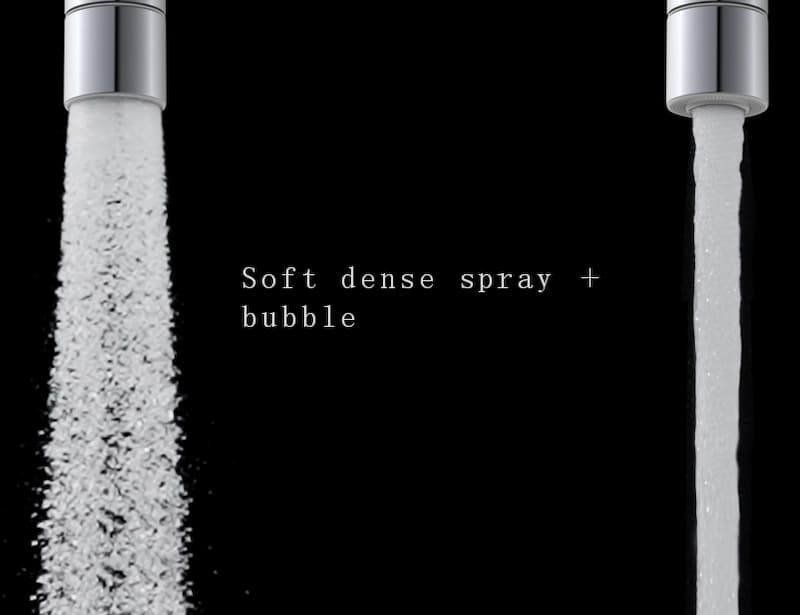 Anti-splashing for daily usage, twist the aerator part slightly to turn from dense spray to bubble stream